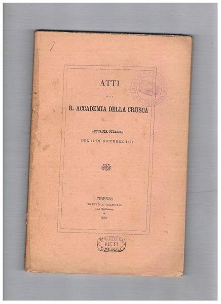 Atti della R. Accademia della crusca; adunanza pubblica del 27 dicembre 1891. Commemorazione di Antonio Stoppani letta da Carlo Gorresio; ecc.