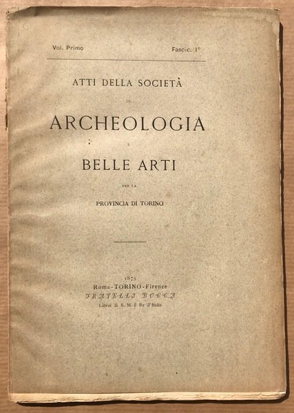 ATTI DELLA SOCIETÀ DI ARCHEOLOGIA E BELLE ARTI PER LA PROVINCIA DI TORINO. Volume Primo Fascicolo I°.