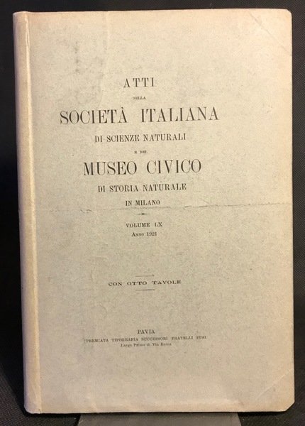 Atti della Società Italiana di Scienze Naturali e del Museo Civico di Storia Naturale in Milano. Volume IX Anno 1921.