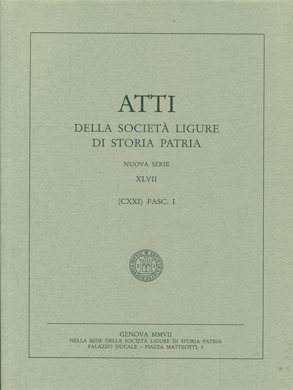 Atti della societa ligure di storia patria. Vol XLVII Fasc I