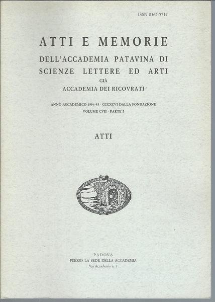 ATTI E MEMORIE DELL'ACCADEMIA PATAVINA DI SCIENZE LETTERE ED ARTI GIA' ACCADEMIA DEI RICOVRATI