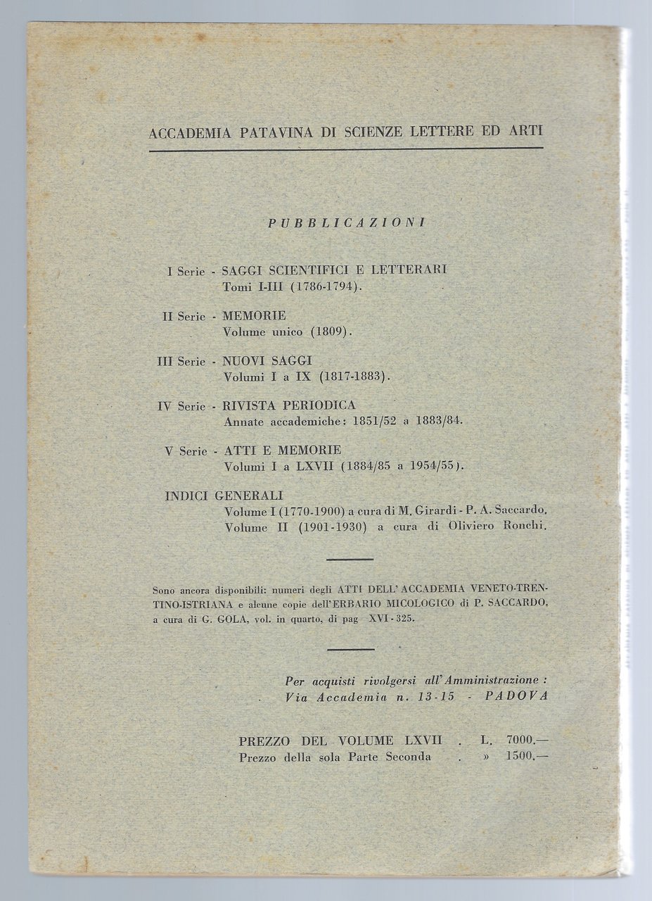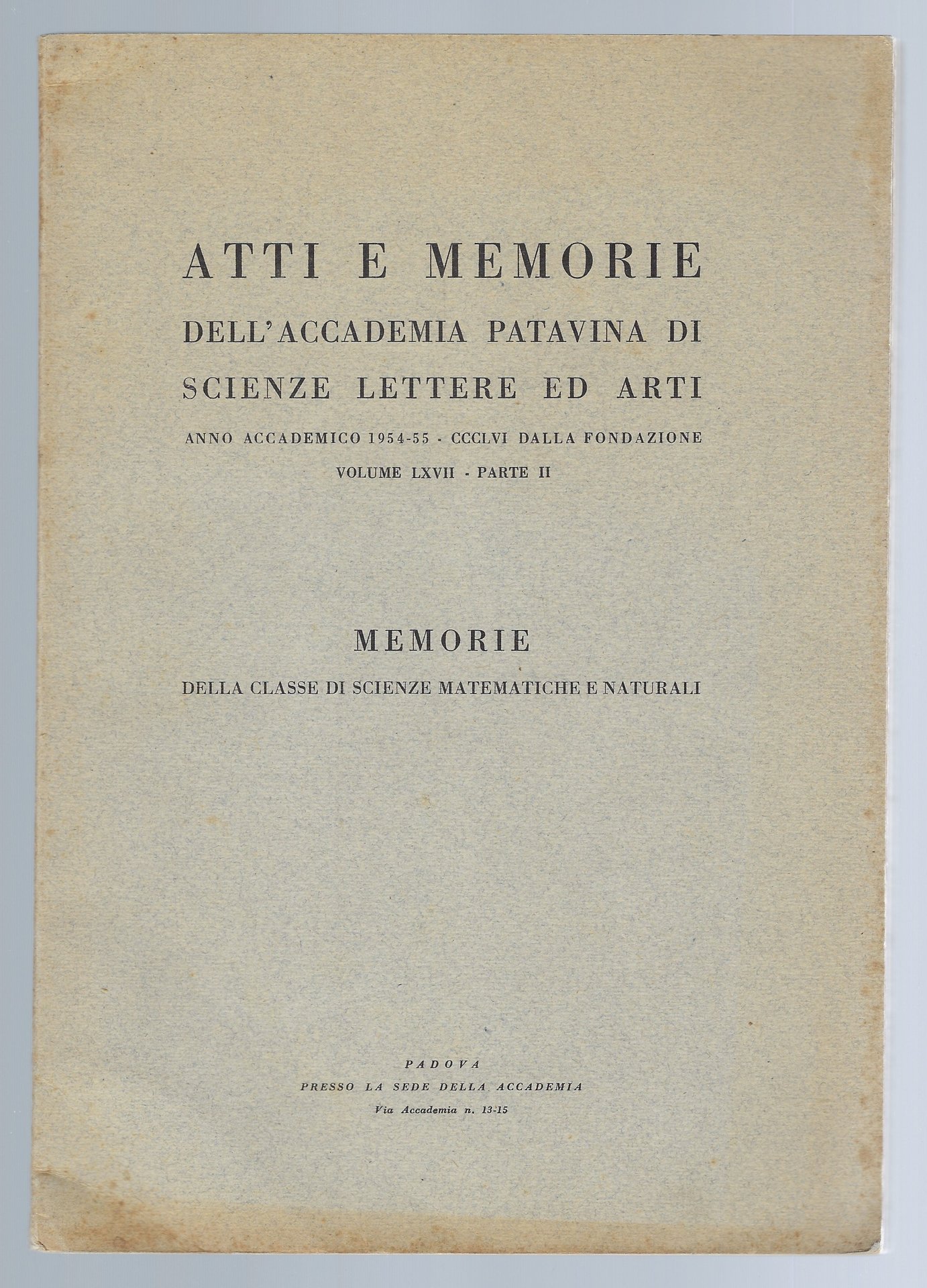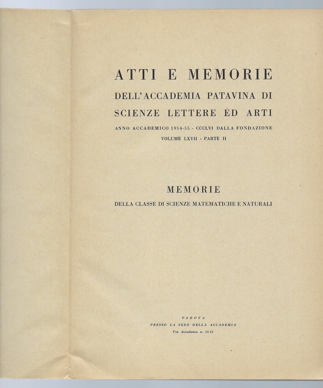 Atti e memorie dell'Accademia Patavina di Scienze Lettere ed Arti. Volume LXVII - Parte II. Memorie della classe di scienze matematiche e naturali.