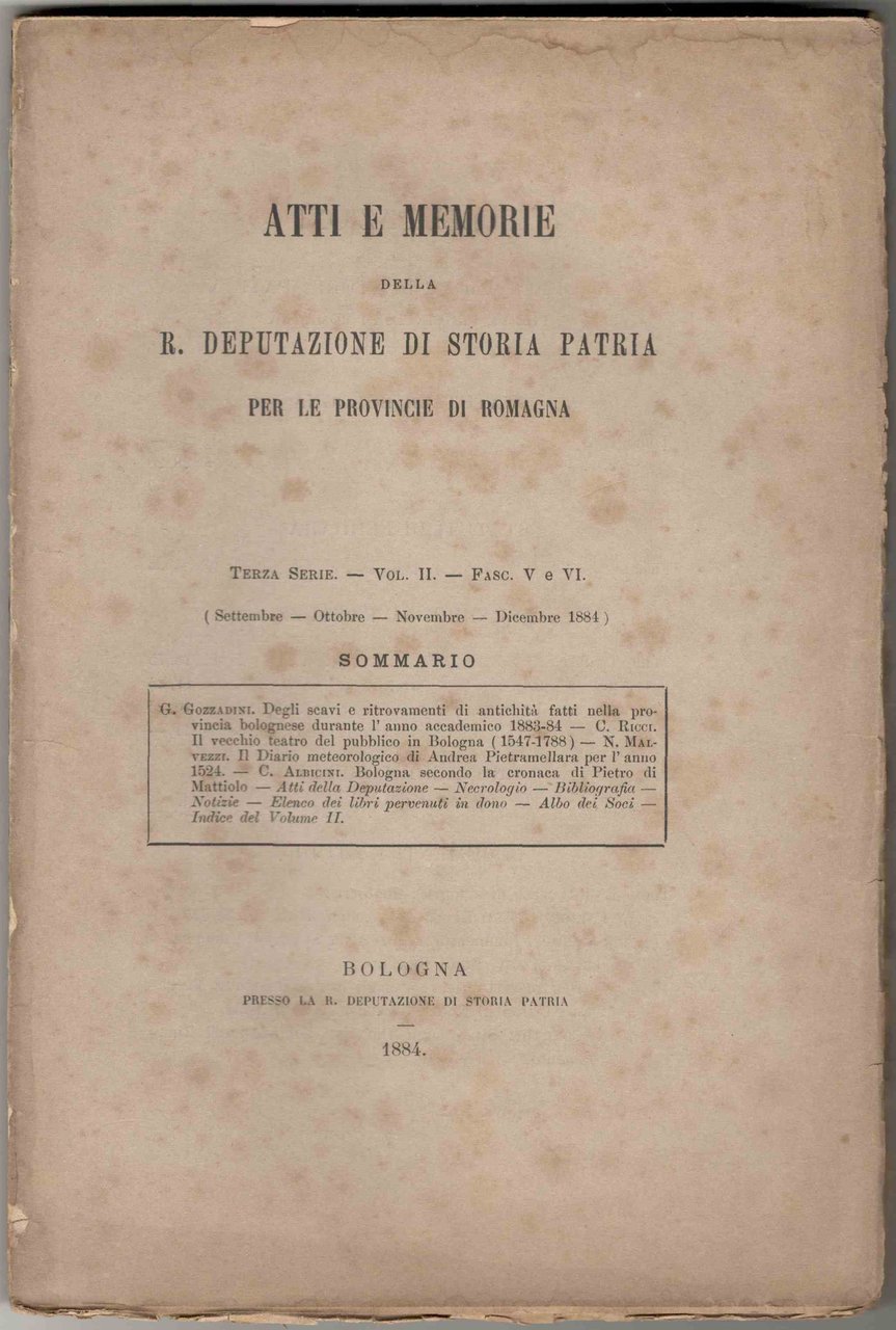 Atti e memorie della R. Deputazione di Storia Patria per le provincie di Romagna. Terza serie. Vol. II. Fasc. V e VI (Settembre - Ottobre - Novembre - Dicembre 1884)