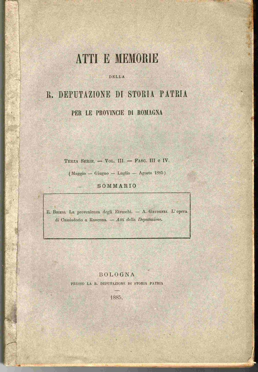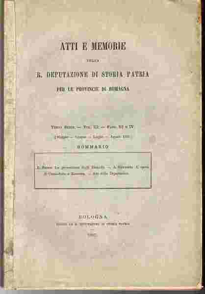 Atti e memorie della R. Deputazione di Storia Patria per le provincie di Romagna. Terza serie. Vol. III. Fasc. III e IV (Maggio - Giugno - Luglio - Agosto 1885)