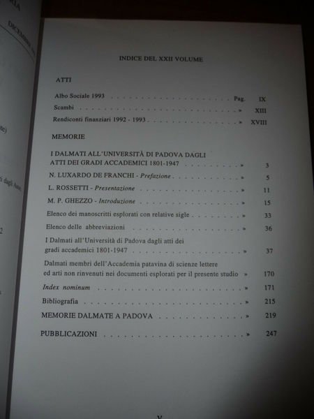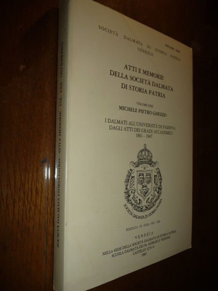 TITOLO: ATTI E MEMORIE DELLA SOCIETA DALMATA DI STORIA PATRIA Vol XXII I DALMATI ALL'UNIVERSITA' DI PADOVA DAGLI ATTI DEI GRACI ACCADEMICI 1801-1947 DESCRIZIONE: Società Dalmata di Storia Patria Venezia 1993 br. ed. pp. 245 con num. ill. b/n n.t. in 8°. Dettagliata descrizione delle dell'argomento in titolo. CONDIZIONI: Perfette. PESO / WEIGHT: 586 gr. without package
