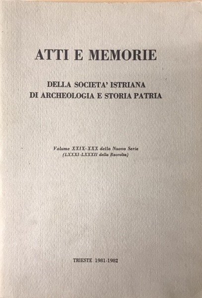 ATTI E MEMORIE DELLA SOCIETA' ISTRIANA DI ARCHEOLOGIA E STORIA PATRIA. Volume XXIX-XXX della Nuova Serie (LXXXI-LXXXII della raccolta)., 1981-1982.