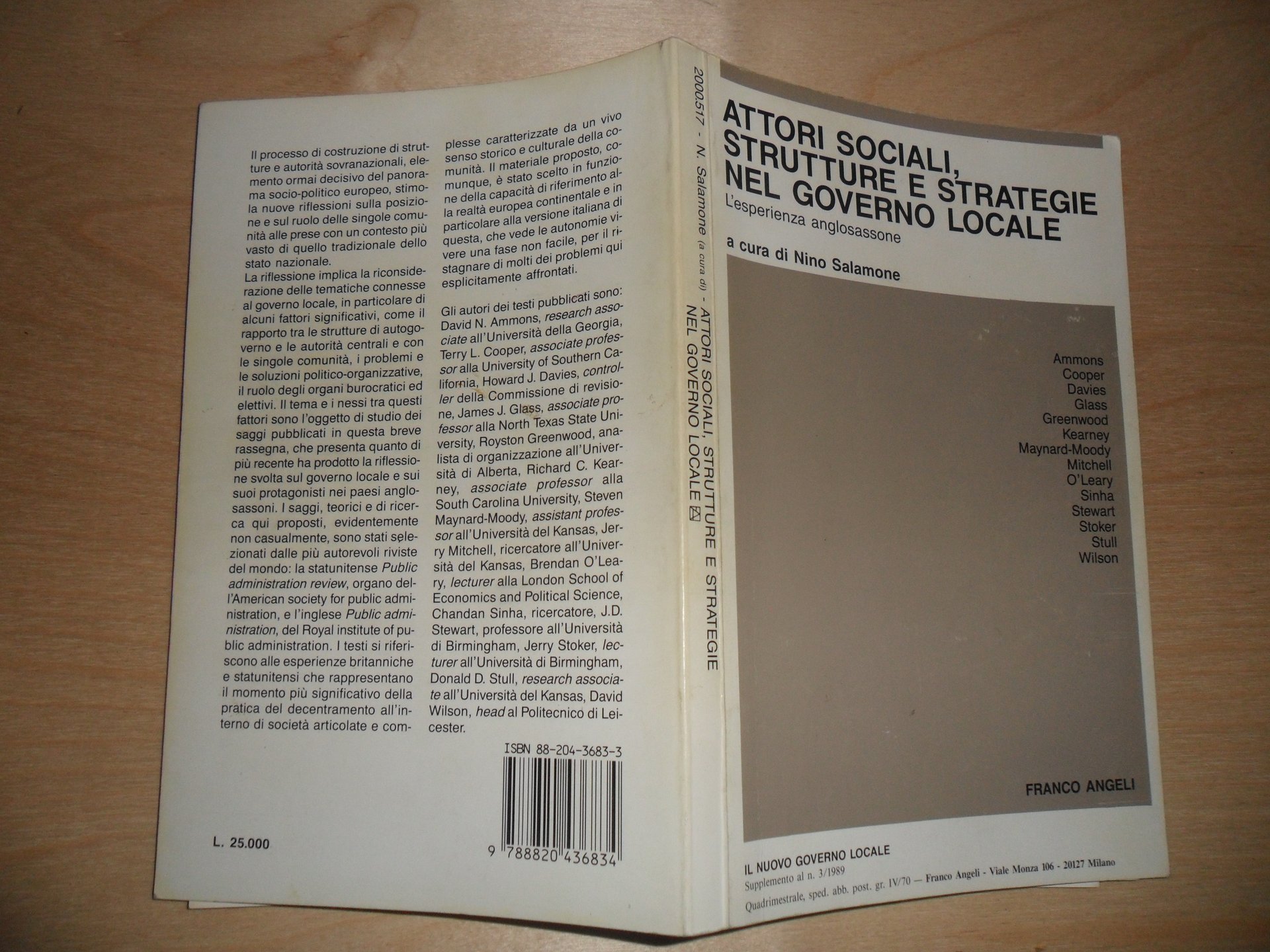 Attori sociali, strutture e strategie governo locale: l'esperienza anglosassone - a cura di Nino Salamone - Franco Angeli, supplemento al n. 1/1989 del quadrimestrale "il nuovo governo locale"