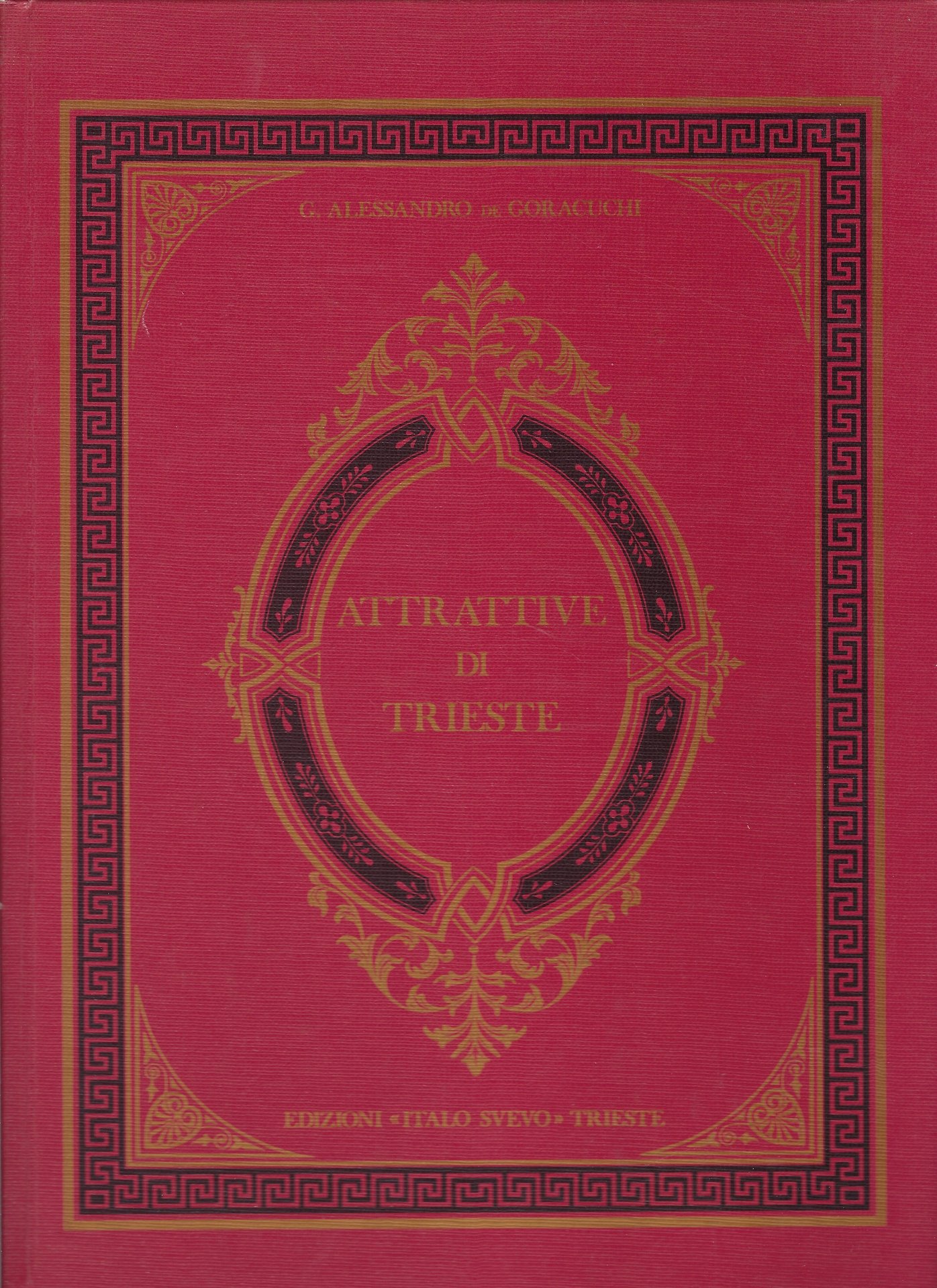 Cartonato editoriale lucido rosso con titoli dorati in cornici bicrome al piatto anteriore.