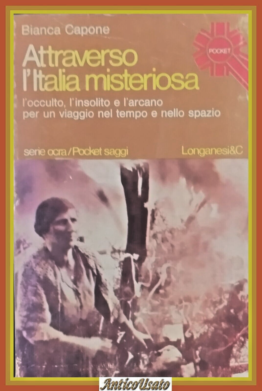 ATTRAVERSO L’ITALIA MISTERIOSA l’occulto l’insolito e l’arcano per un viaggio nel tempo e nello spazio di Bianca Capone. Longanesi editore, 1978. 166 pagine illustrazioni in bianco e neto fuori testo. Copertina editoriale in brossura. Dimensioni: 11,5 x 18 cm. Stato di conservazione: molto buono (pagine ingiallite) .Libro usato saggistica esoterismo spiritismo
