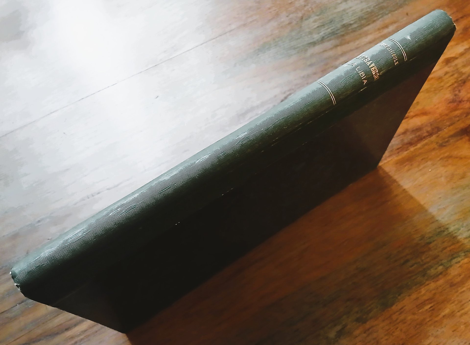 - legatura coeva in mezza percallina verde con punte, titoli e filetti impressi in oro al dorso, carta marmorizzata ai piatti, guardie in carta decorata e cerniere in tela