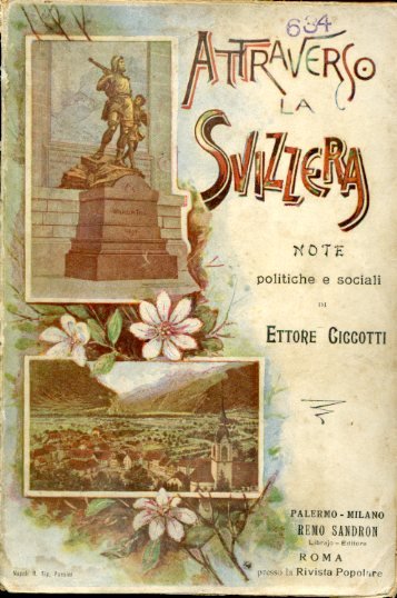 In-16°, pp. IX, XLV, 191, brossura editoriale illustrata a colori. Tabelle a p. pag. in fine. Ingialliture dovute al tipo di carta, ma bell'esemplare. Prima edizione di queste attente notazioni sulla realtà politica, sociale ed economica della Svizzera stese dal famoso storico e antichista lucano. Ciccotti fornisce ampie informazioni sulle tradizioni elvetiche, le feste e le cerimonie locali, il federalismo e l'assetto politico-amministrativo, l'ordinamento giuridico, l'equilibrio tra autorità e libertà, l'economia, l'industria, l'agricoltura, i trasporti, la vita sociale, il lavoro, etc. Precede una 'lettera aperta' a Napoleone Colajanni. Biblioteca della Rivista Popolare, V.