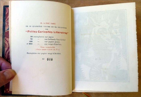 Un volume de format petit in 8° carré de 162 pp.; édition définitive augmentée de pièces et strophes inédites et rehaussée de onze bois dessinés et gravés par Albert Gleizes. Reliure de l'époque en demi veau brun; décor et titre dorés au dos. Couverture conservée. Dos très légèrement passé. Quatrième volume de la collection des "Petites Curiosités Littéraires"; exemplaire N°611/800 sur vergé d'Arches. Bel exemplaire. Voir les photos.
