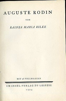 In-8°, pp. 118, legatura editoriale m. tela nera con titolo in oro al dorso. Piatti in cartone blu con riproduzione in oro della firma autografa di Rodin. 96 tavv. in b.n. f.t. Stato di nuovo. Reimpressione della classica monografia dedicata a Rodin da uno dei massimi poeti moderni. L'amicizia tra il grande scultore e il grande poeta nacque nel corso del soggiorno parigino di Rilke, nel 1902; lo scrittore ricoprì anche per un periodo l'incarico di segretario di Rodin. Sarkowski, 1333A