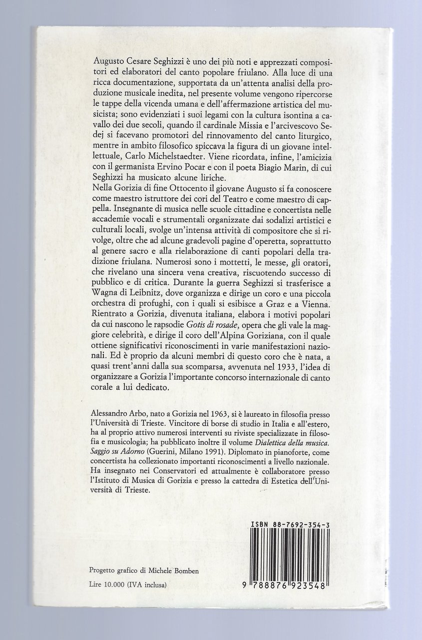 Legatura in cartonato semi-rigido con l'immagine del Seghizzi al piatto anteriore.