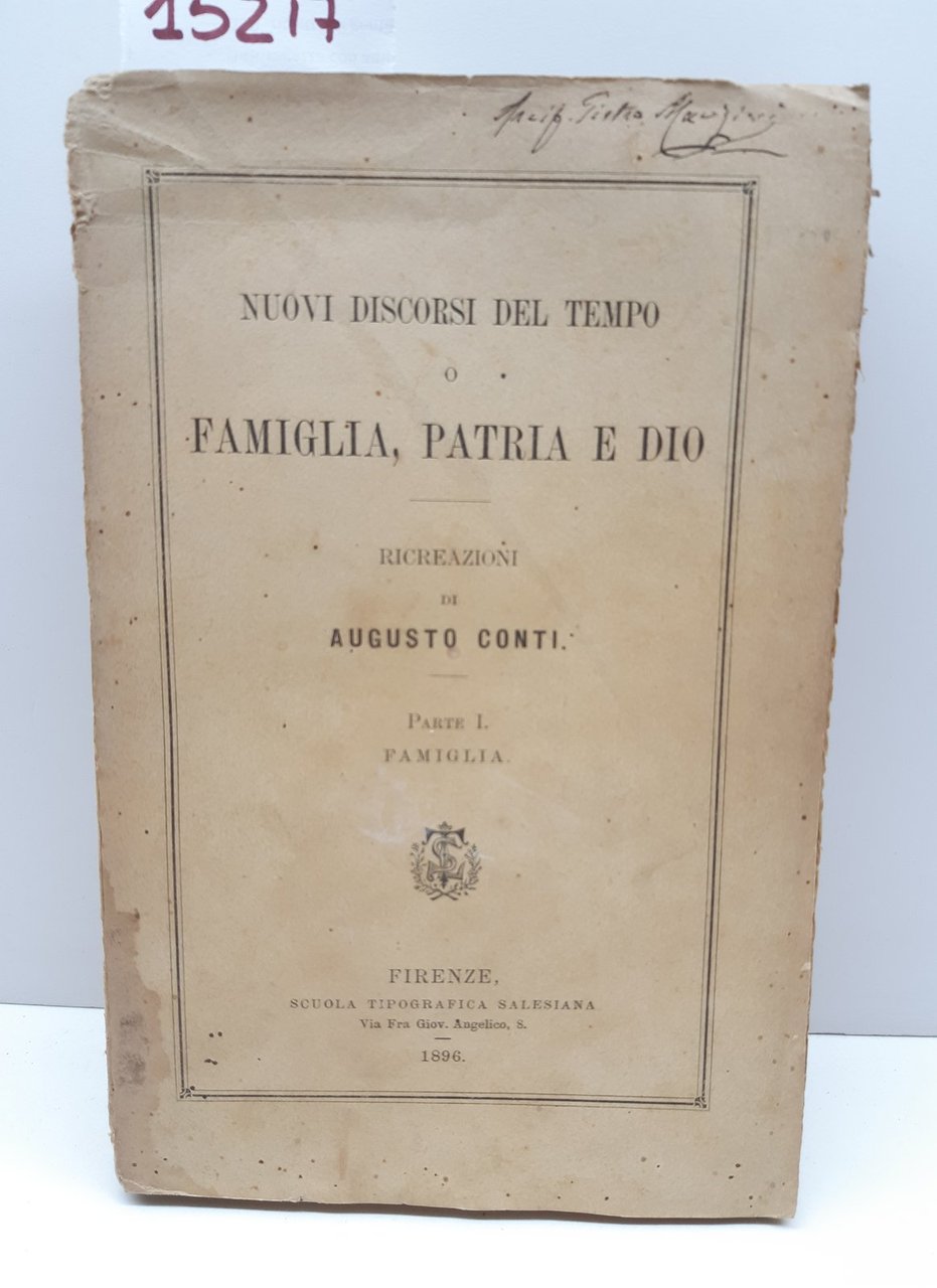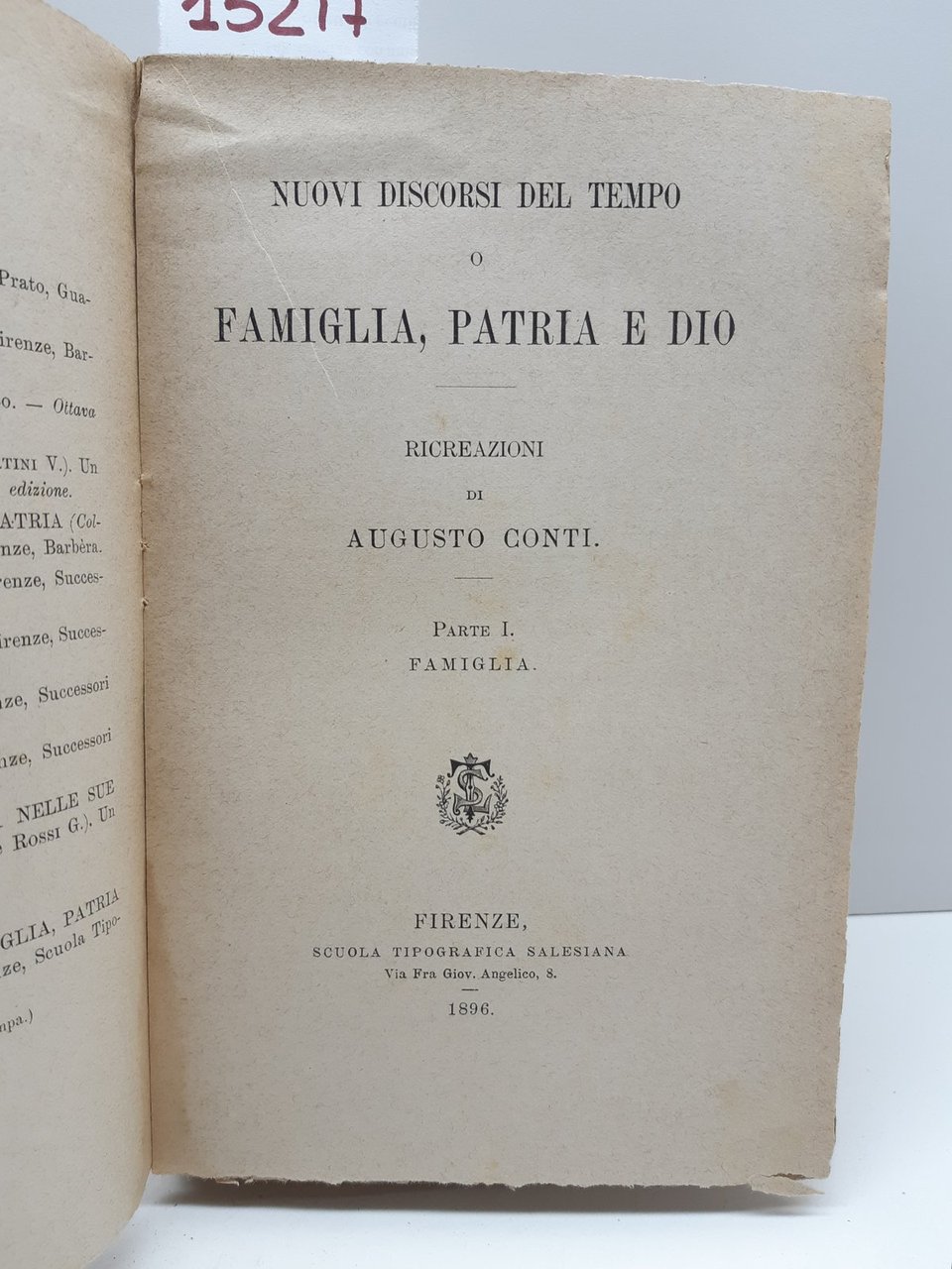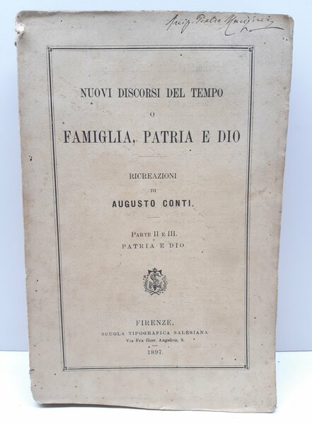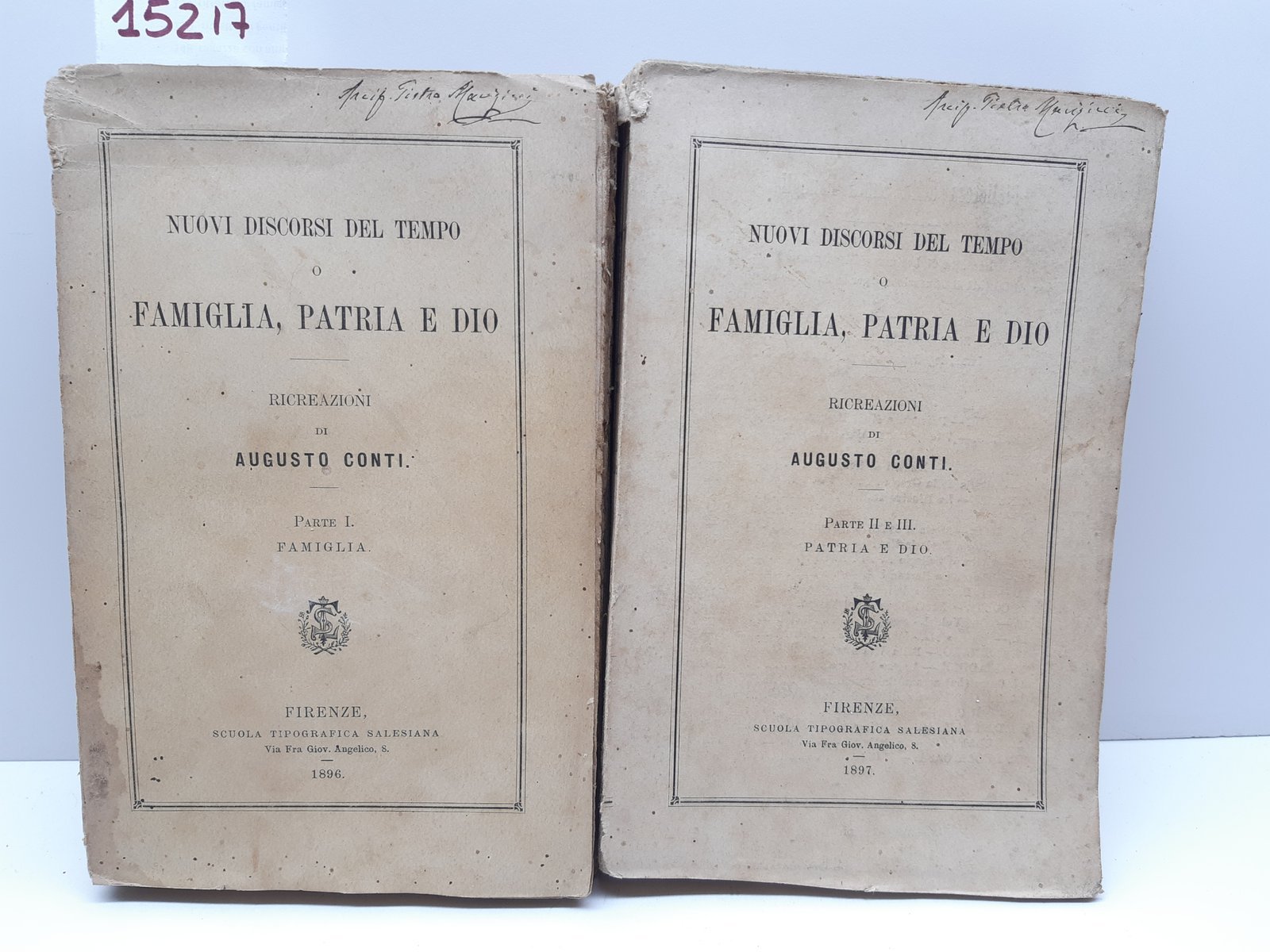 Augusto Conti Nuovi discorsi del tempo o famiglia Patria ed Dio due volumi 1897
