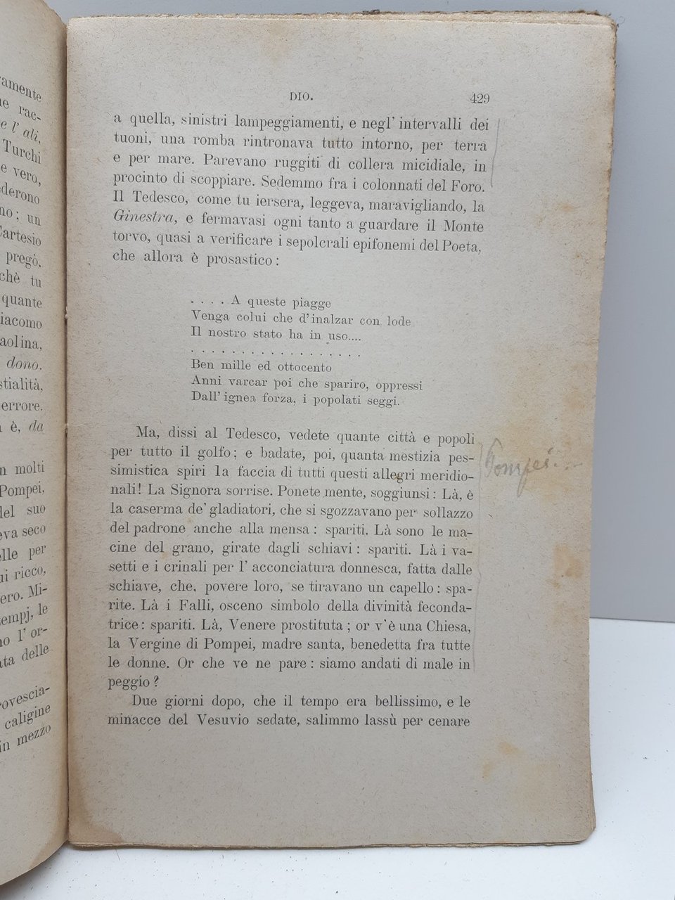 Volume primo: copertina morbida editoriale in precarie condizioni, aloni e macchie diffuse ai piatti e al dorso, una piega al margine inferiore alla quarta di copertina, dorso e piatto anteriore con una macchia, dorso con mancanze ai margini pieghe di lettura ed etichetta di catalogazione, firma di possesso al margine superiore del piatto anteriore, tagli irregolari bruniti con fioriture impolverati quelli superiori, all'antiporta ex-libris, interno in precarie condizioni, legatura leggermente aumentata, pagine leggermente brunite con fioriture diffuse, segni di matita e appunti ai margini del testo, vedere immagini, numero pagine 464, ultime pagine leggermente brunite