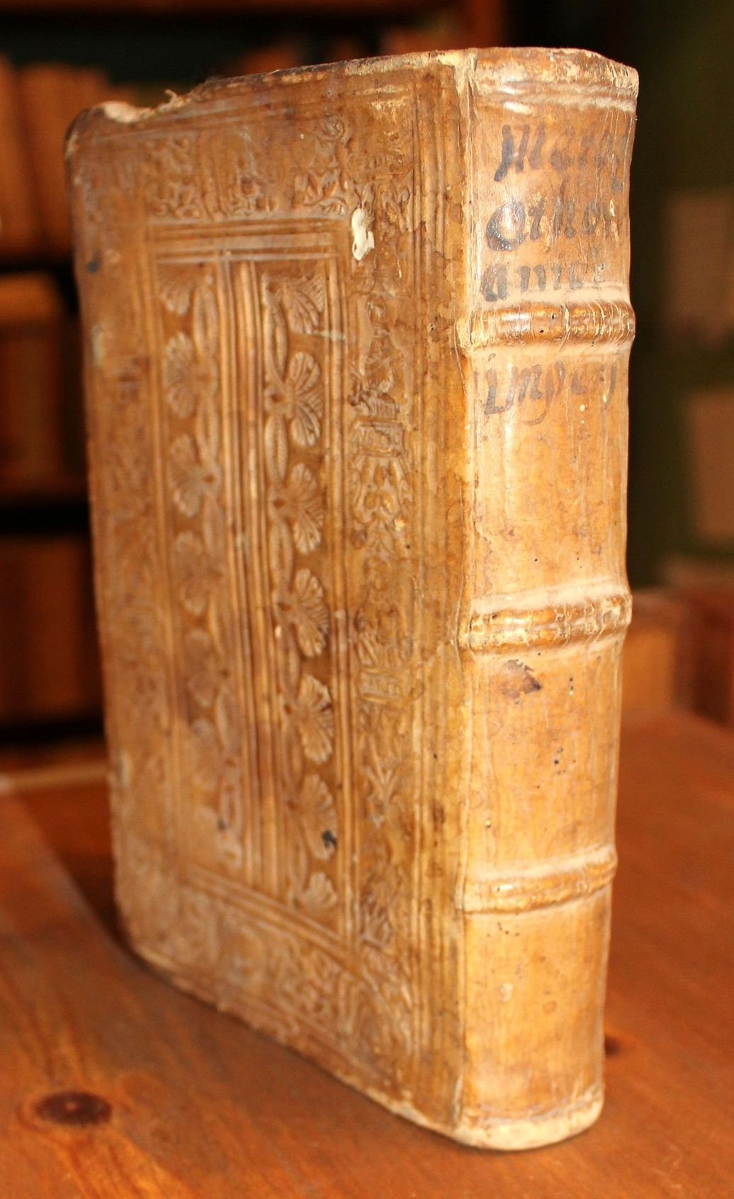 In 8° (cm. 16 x 10), (60 cc.), 340 pp., (2 cc.). Leg. Dell’epoca in pelle di scrofa con impressioni a secco riproducenti motivi vegetali. Dorso a nervetti con titolo manoscritto. Qualche raro alone. Copia in buono stato. Marca tipografica xilografata al verso dell’ultima carta. Prima edizione latina dell'Estat de la court du grant Turc', pubblicata ad Anversa nel 1542. Prima parte di una serie che comprendeva anche le opere di Pietro Bizzarri: Pannonicum bellum, sub Maximiliano II. Rom. et Solymano Turcar. imperatoribus gestum, e Cyprium bellum, inter Venetos, et Selymum Turcarum imperatorem gestum. Cfr. Adams, 559; Brunet, II, 1574; Graesse III, 76.