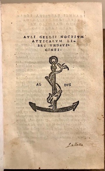 8vo (cm. 16), 32 cc.nn. (di cui l’ultima bianca), 289 cc., 51 cc.nn. Ancora aldina al frontespizio e al verso dell’ultima carta. Legatura seicentesca in piena pelle con ricchi fregi e titolo oro su tassello al ds. Carte di guardia policrome. Antica firmetta di appartenenza al frontis. Esemplare assai fresco ed in ottimo sta to di conservazione. Prima ed unica edizione aldina, prima impressione. Cfr. Renouard (p. 73): ‘Cette édition a été donnée par G.B. Egnatio, qui y a joint, non pas des commentaires, mais seulement un double index assez ample, avec l’explication des passages grecs, et une préface.’; Adams, G-343.