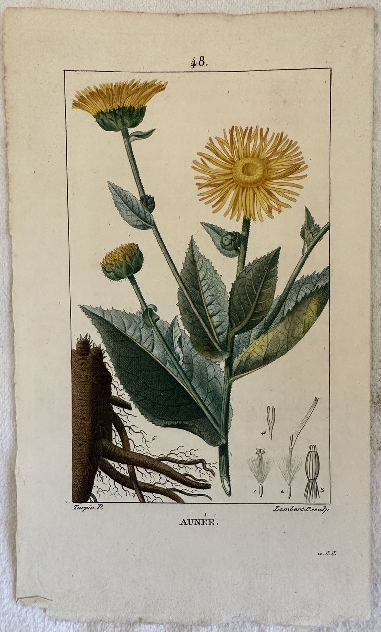 INCISIONE: Litografia con coloritura coeva all'acquarello AUTORE: Lambert su disegno di Turpin ATLANTE: Flore medicinale - Paris, Panckoucke 1814 DIMENSIONI FOGLIO: cm 21,5x13 DIMENSIONI INCISIONE: cm 15,5x9,5 EPOCA: 1814 CONDIZIONI: buone condizioni Quest'opera imponente era corredata da centinaia di incisioni che rappresentavano tutto il mondo animale e vegetale. L'opera deriva da un eccellente lavoro di luminari del XVIII secolo supportati dal Re francese Louis XV in seguito guidati dallo stesso Turpin, considerato al tempo il più grande incisore di botanica. La maggior parte delle incisioni sono firmate Turpin & Pretre. Carta bianchissima e resistente di ottima qualità.ENGRAVING: Lythograph with coeval colouring with acquarello painting AUTHOR: Lambert after Turpin ATLAS: Flore medicinale - Paris, Panckoucke 1814 SIZE OF PAGE:cm 21,5x13 SIZE OF THE ENGRAVING:cm 15,5x9,5 PERIOD: 1814 CONDITIONS: good conditions This imponent work was made up of different volumes and contained hundreds of engravings that represented all the plant and animal kingdom. This work derives from an excellent work of luminaries of the 18th century supported by the french King Louis XV and then directed by the same Turpin that was considered as the greatest botanical engraver of his time. Very white strong paper of good quality