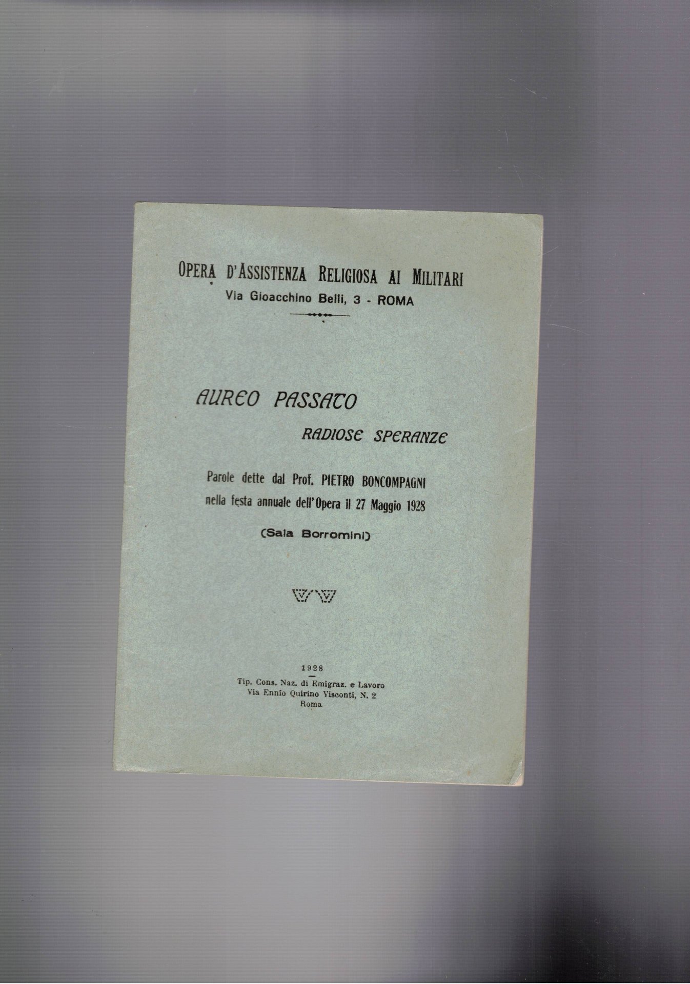 Aureo Passato, radiose speranze. Parole dette dal prof. P. Boncompagni nella festa annuale dell'opera il 27 maggio 1928 (sala Borromini).