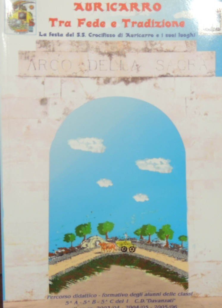 Auricarro. Tra fede e tradizione. La festa del S.S. Crocifisso di Auricarro e i suoi luoghi. Percorso didattico-formativo degli alunni delle classi VA, VB, 5C del I C. D. Davanzati negli aa. Ss. 2003/04-2004/05-2005/06, realizzazione I Circolo Didattico D. Forges Davanzati, patrocinio Amministrazione Comunale di Palo del Colle, collaborazione Banca Popolare di Puglia e Basilicata, s.n., s.l. (ma stampato a Palo del Colle, Bari, presso le Grafiche Ferrara) 2006, pp. 199, ill. b.n. e col., cm 24, br. ed. Perfetto.