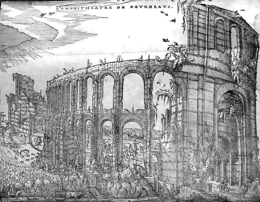 In-8 gr. (mm. 257x185), 2 parti in 1 volume, p. pelle bazana coeva (con abras.), dorso a cordoni (restaur.) con decoraz. e titolo oro su tassello, tagli rossi, 150; 246 cc.nn.; bella marca tipografica al frontespizio, titolo in rosso e nero, ornato da testate, grandi iniz. e finalini inc. su legno.Le prime 150 cc.nn.: 18 di prefazione e Indice + 132 (stampate separatamente nel 1575) sono di testo. Le restanti 246 cc.nn. contengono il "commento", stampato nel 1580. Si tratta di: "Eliae Vineti Santonis commentarius in Ausonii Burdigalensis Epigrammata" di 244 cc.nn. (incluso l'Errata - datato 1580) + "Martialis Campani Medici Burdigalensis, è latronum manibus divinitus liberati explicatio philosophica in epigramma decimum Ausonii potae Burdigal", 2 cc.nn. (senza data). Il "commento", contiene figure nel testo, anche a p. pagina, e 2 tavole ripieg. fuori testo che illustrano il palazzo e l'anfiteatro di Bordeaux.L'opera del poeta latino Ausonio (310-393 d.C.) comprende epigrammi, epitaffi, idilli, lettere, il poemetto la "Mosella". "Edizione originale". Cfr. Adams,I,2282 che non cita le ultime 2 cc.nn. di "commento" - Brunet,I,573: "Belle édition, estimée pour le commentaire" - Graesse,I,259. Esemplare con bruniture, leggerm. corto del marg. super., ma complessivam. in discreto stato di conservazione.
