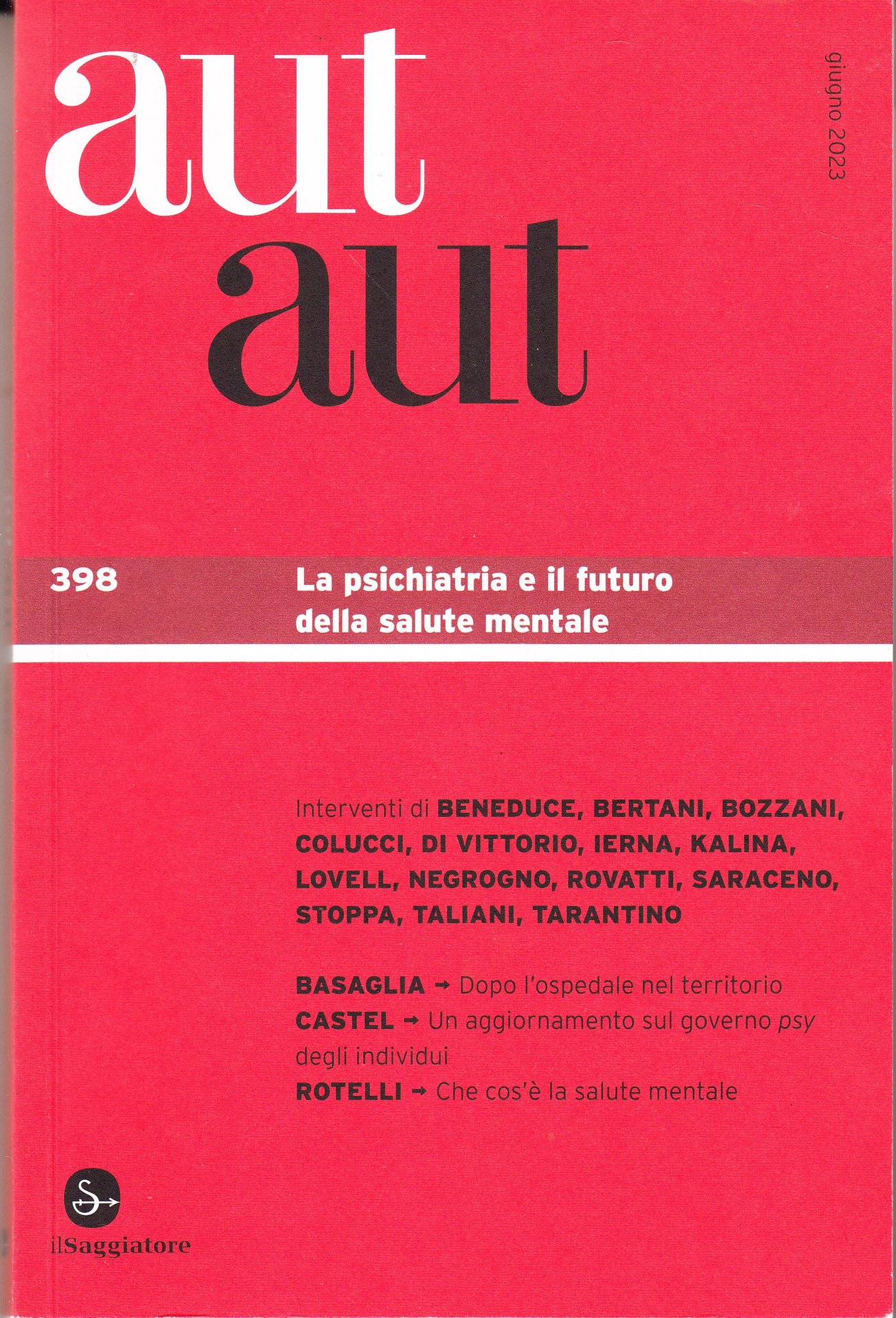 Aut aut. La psichiatria e il futuro della salute mentale. Giugno 2023. N.398