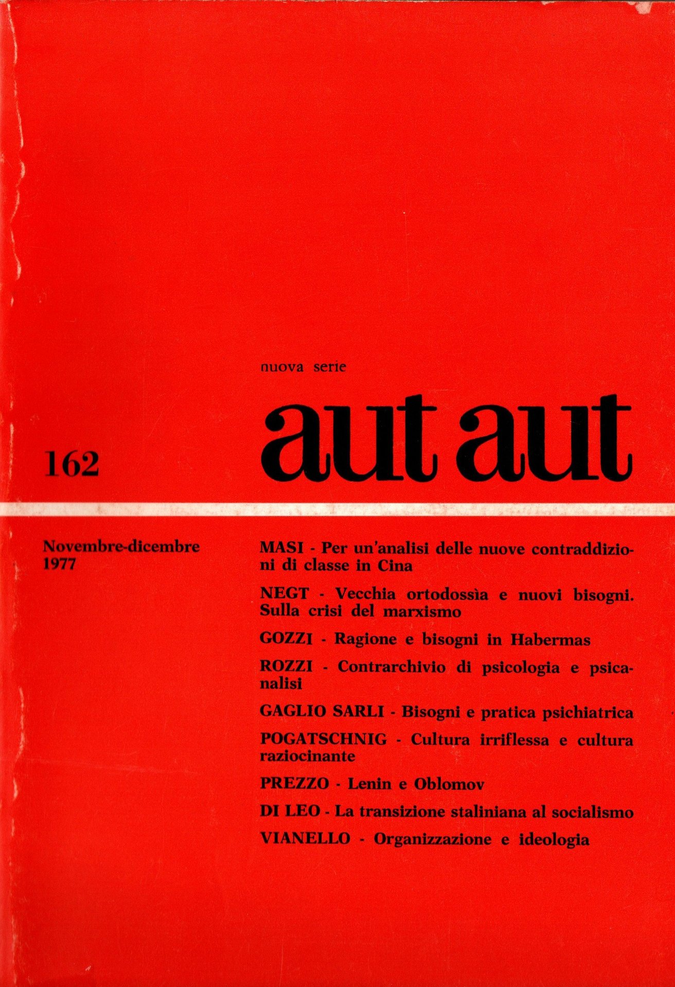 Aut Aut. Nuova serie. N. 162 Novembre-Dicembre 1977