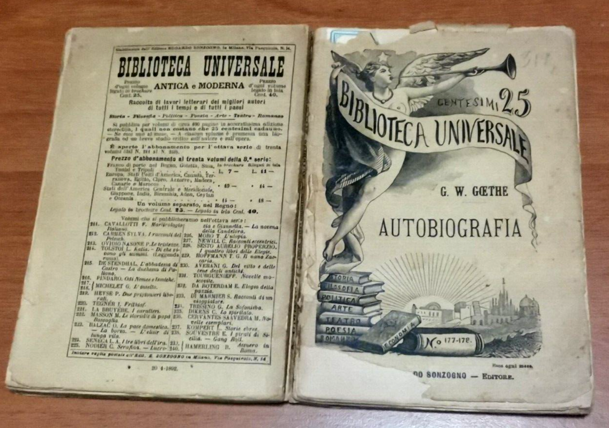 AUTOBIOGRAFIA di G W Goethe 1892 Sonzogno Libro antico biblioteca universale