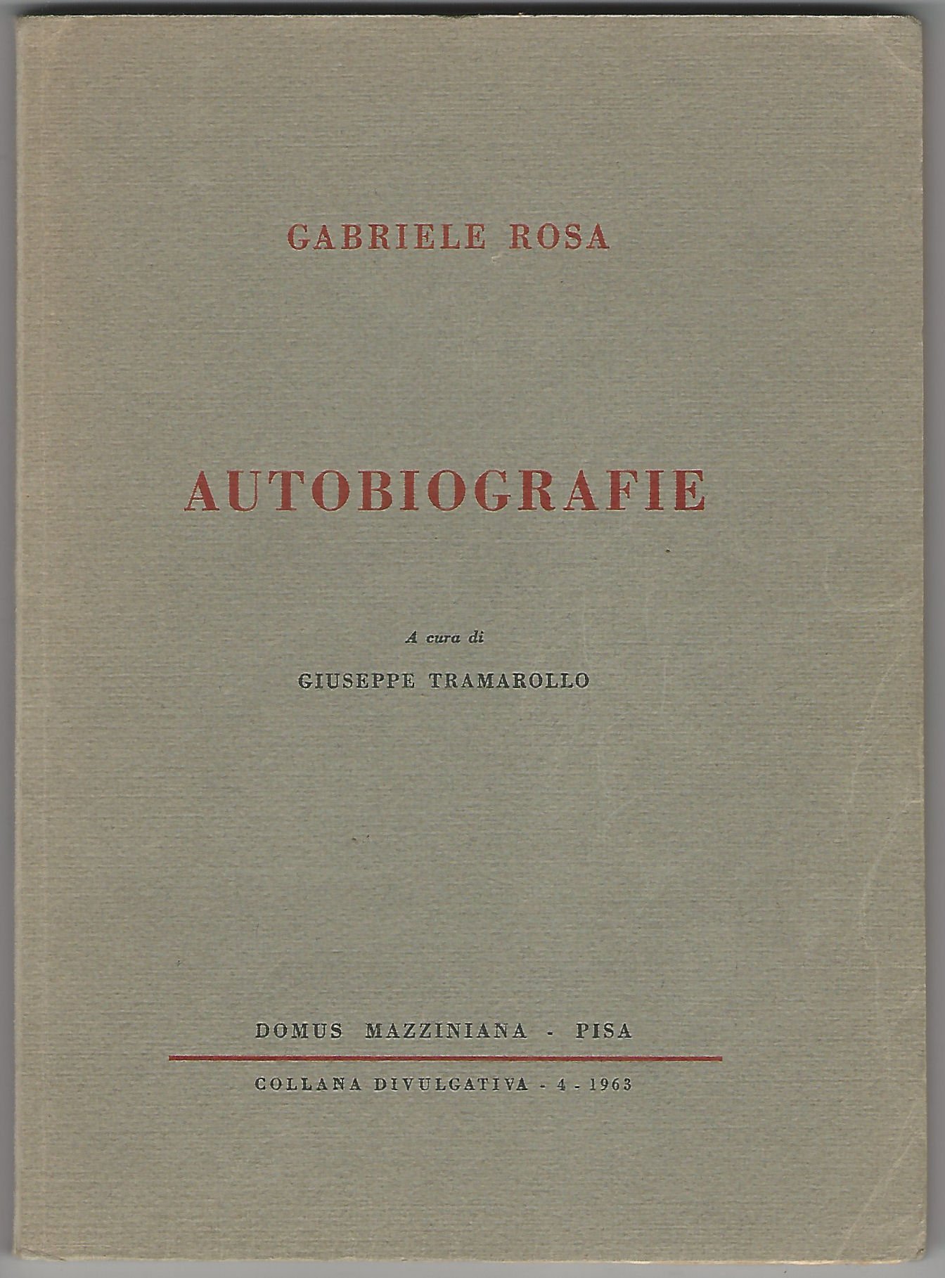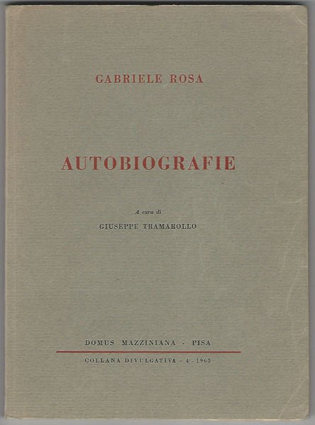 In 8, p. 145 [3], numerose postille a matita, br. orig. - Contiene le due stesure autobiografiche: Autobiografia prima (stesa negli anni 1840 - 1861 - 1863); Autobiografia seconda (stesa nel 1890).