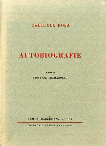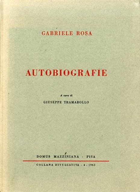 145 p. ; 23 x 16 cm. Collana divulgativa, 4. Gabriele Rosa è stato uno dei personaggi di rilievo del Risorgimento italiano. Seguace della Giovine Italia, venne per questo arrestato nel 1833, e subito condannato a morte, poi la sua pena fu commutata a tre anni che scontò nella Fortezza dello Spielberg, nella cella vicino a quella di Francesco Confalonieri che divenne suo amico, dalla quale fu liberato nel 1838. Rifugiatosi in Piemonte poté far ritorno in Lombardia solo dopo le Cinque giornate di Milano. Fu ospite a Caprino Bergamasco dalla famiglia Malegozzi-Sozzi, dove rimase per molti anni come educatore dei figli e riuscendo a trovare il tempo di dedicarsi agli studi che aveva abbandonato. Dopo il 1859 iniziò la sua attività d'impegno civile. Il 7 marzo 1860 fu eletto nel consiglio comunale e nominato responsabile degli istituti scolastici e dopo pochi mesi provveditore agli studi di Bergamo, incarico che lo obbligò a dimettersi da consigliere comunale, e a nominare suo segretario Pasino Locatelli. Del 6 novembre 1860 la circolare che Rosa mandò a tutti i direttori e presidi: […] il mondo mira attonito questa spettacolo nuovo della più illustre nazione che sorge con prodigi di nazione d'amore di impegno a conquistare libertà e unità politica. Si dimise dall'incarico il 31 agosto 1862 subito dopo i fatti dell'Aspromonte. La sua collaborazione però rimase attiva nella città di Bergamo, diventando parte importante in ogni nuova attività cittadina coprendo l'incarico di direttore della Società industriale e del Comizio Agrario, occupandosi di ogni problema che riguardava l'amministrazione. Collaborò alla rivista Bergamo o sia Notizie Patrie. Rosa era molto amato e considerato nella città orobica che anche la madre di Francesco Nullo, quando ricevette una lettera di condoglianze da Giuseppe Garibaldi, si rivolse a lui per avere un testo adatto quale risposta al generale. Il volume riunisce le due stesure autobiografiche: «Autobiografia prima» (stesa negli anni 1840 - 1861 - 1863); «Autobiografia seconda» (stesa nel 1890). Opera a cura di Giuseppe Tramarollo. . Brossura editoriale, coperta in cartoncino flessibile di colore grigio, titolo impresso al piatto e al dorso. Codice libreria 8345.