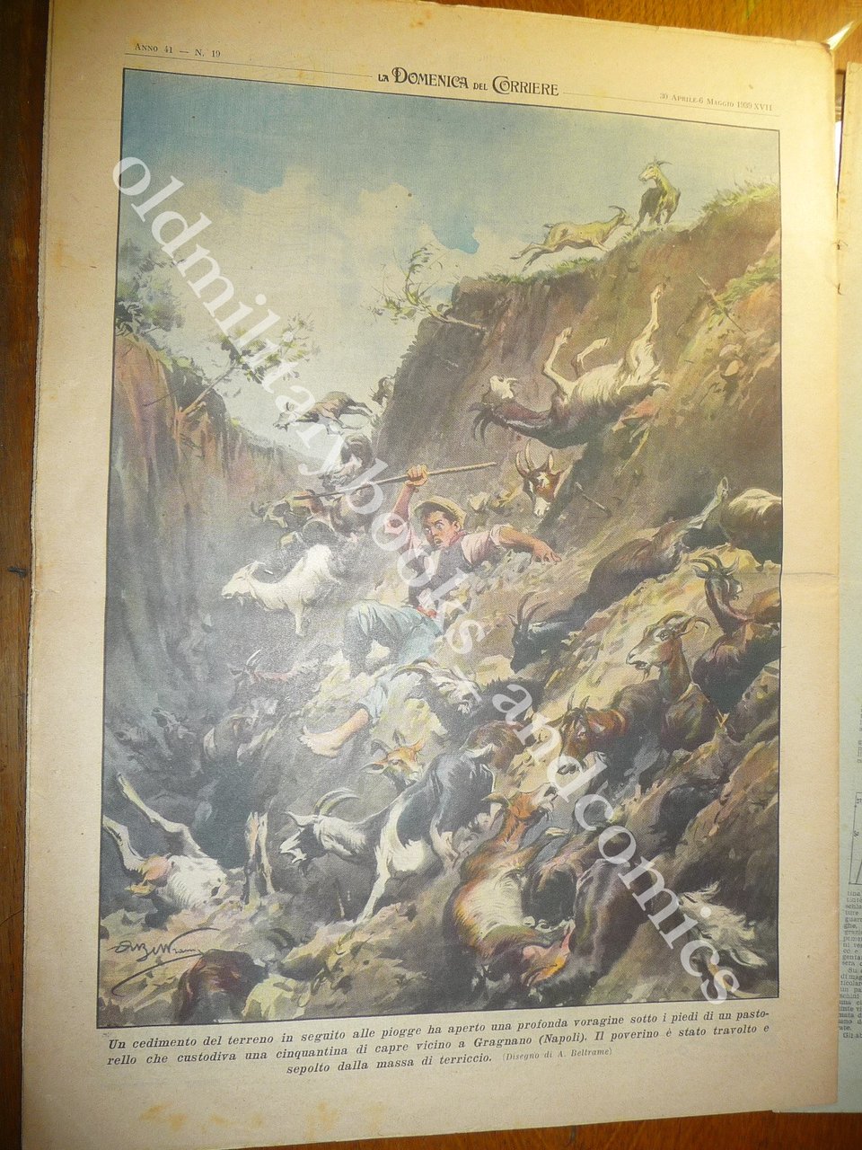 RETRO: Un cedimento del terreno in seguito alle piogge ha aperto una profonda voragine sotto i piedi di un pastorello che custodiva una cinquantina di capre vicino a Gragnano (Napoli). Il poverino è stato travolto e sepolto dalla massa di terriccio.