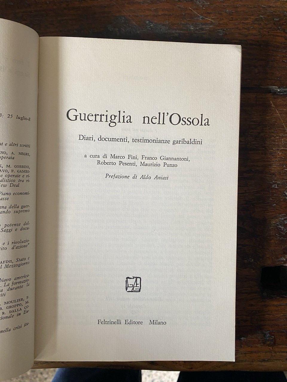 Autografato Aniasi Aldo prefazione di, Guerriglia nell'Ossola Feltrinelli 1975