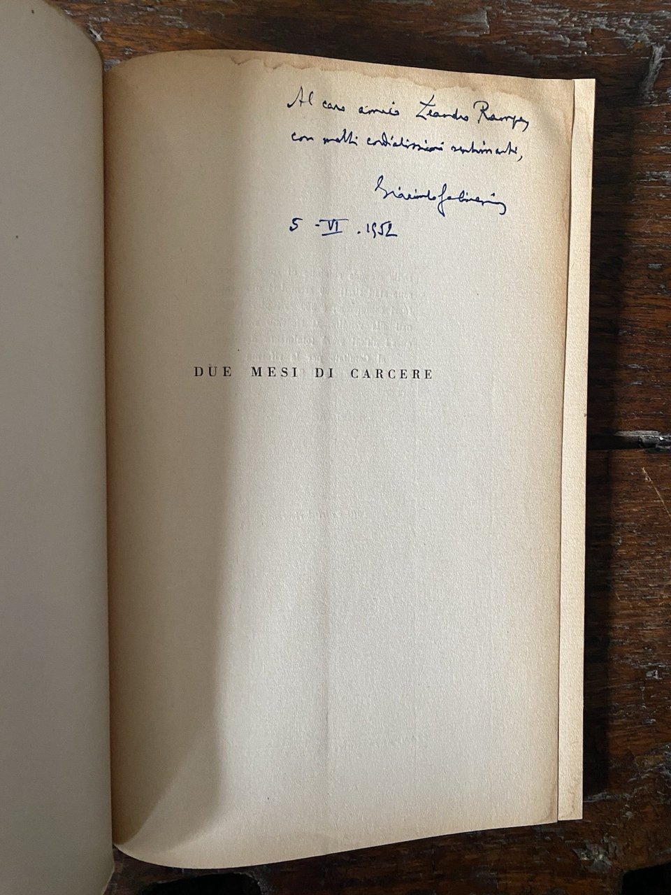 Autografato Gambirasio Giacinto Due mesi in carcere Bergamo Ediz. Orobiche 1952