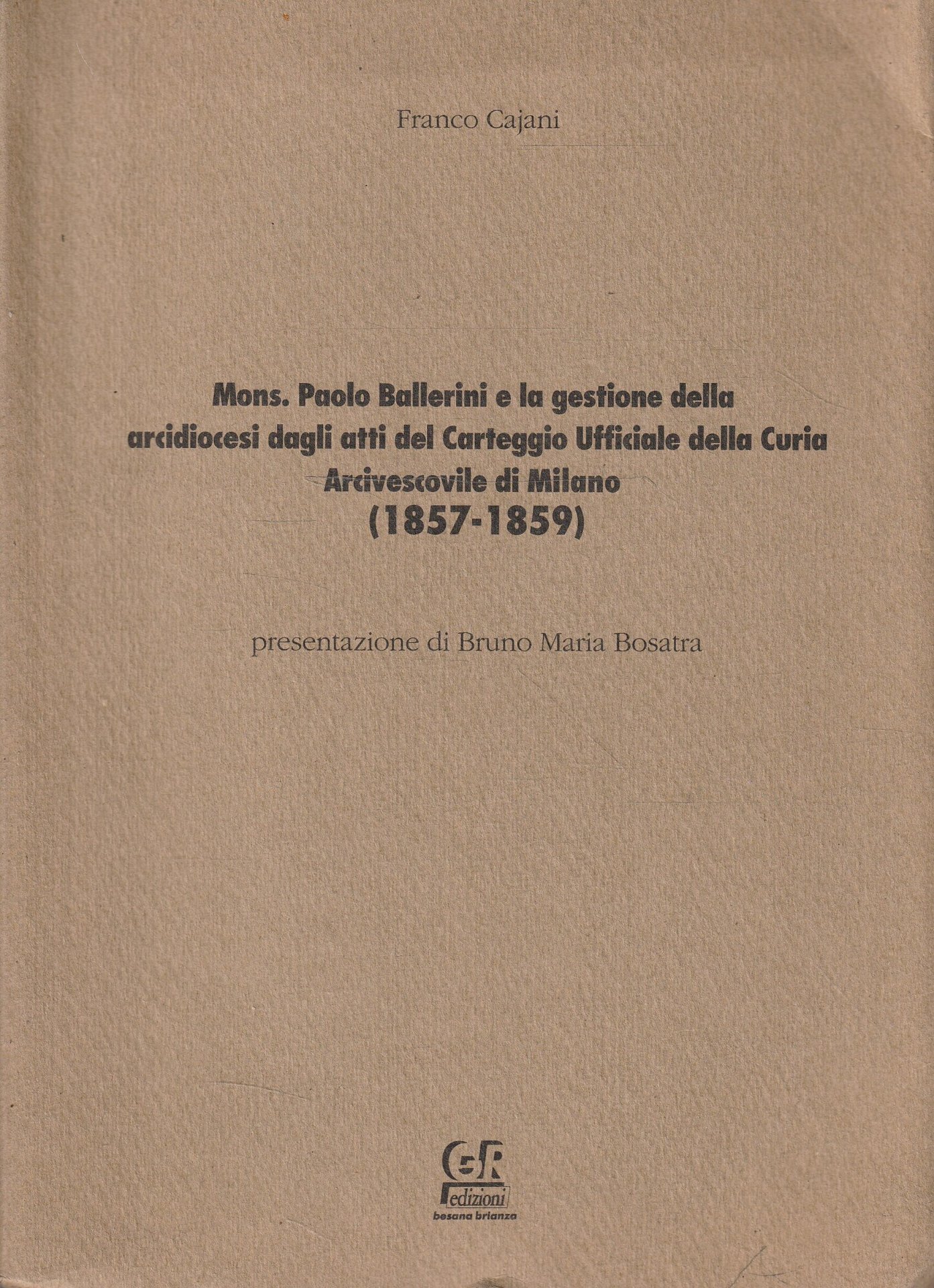Autografato ! Mons. Paolo Ballerini e la gestione dell'arcidiocesi dagli atti del Carteggio Ufficiale della Curia Arcivescovile di Milano (1857-1859)