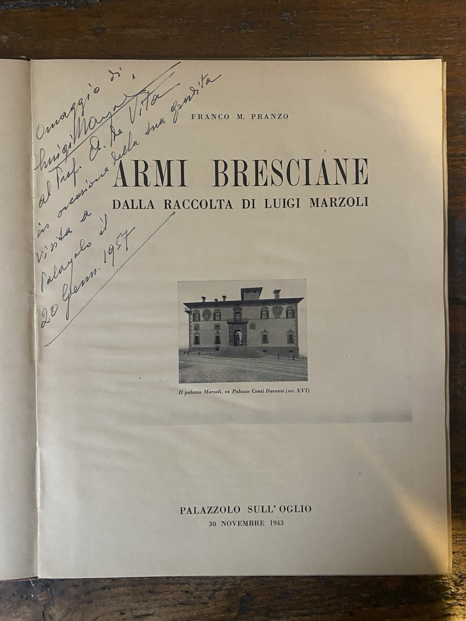 Autografato Pranzo Franco M. Armi bresciane nella raccolta di Luigi Marzoli 1943