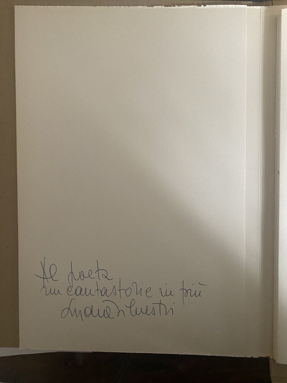 Con sei acqueforti originali firmate da Lydia Silvestri Tiratura di 80 esemplari numerati Esemplare numero 15/80 Dedica dell'artista Milano Arti Grafiche Moneta 1983 In 4° quartine sciolte in cofanetto editoriale I° edizione Ottimo stato