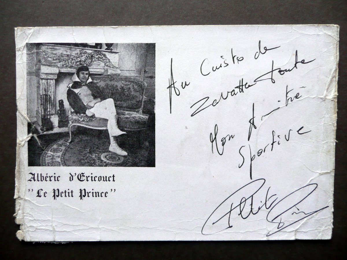 Autografo Alberic d'Ericourt Le Petit Prince Cartoncino Ginnasta Lotta Anni '60