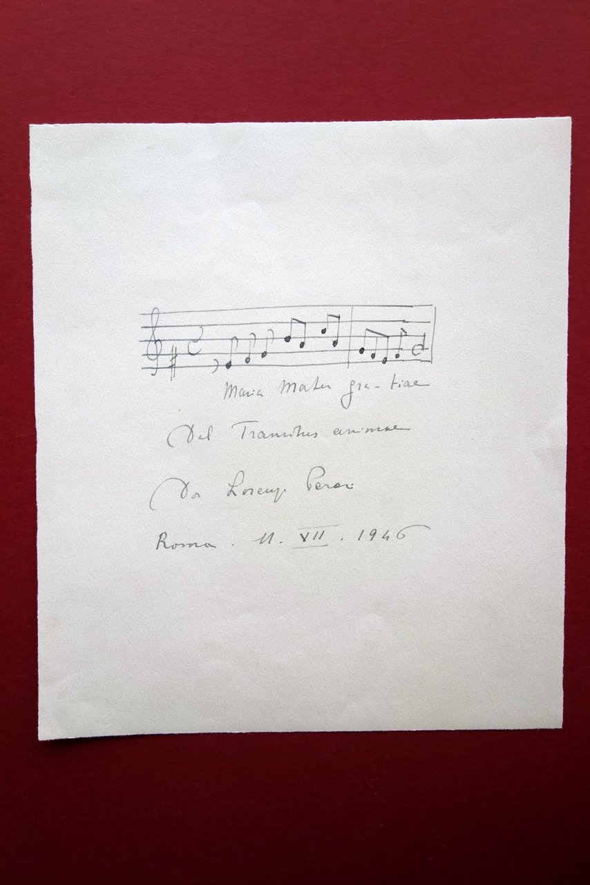 Autografo Don Lorenzo Perosi Due Battute Musicali Transitus Animae 1946 Amorth