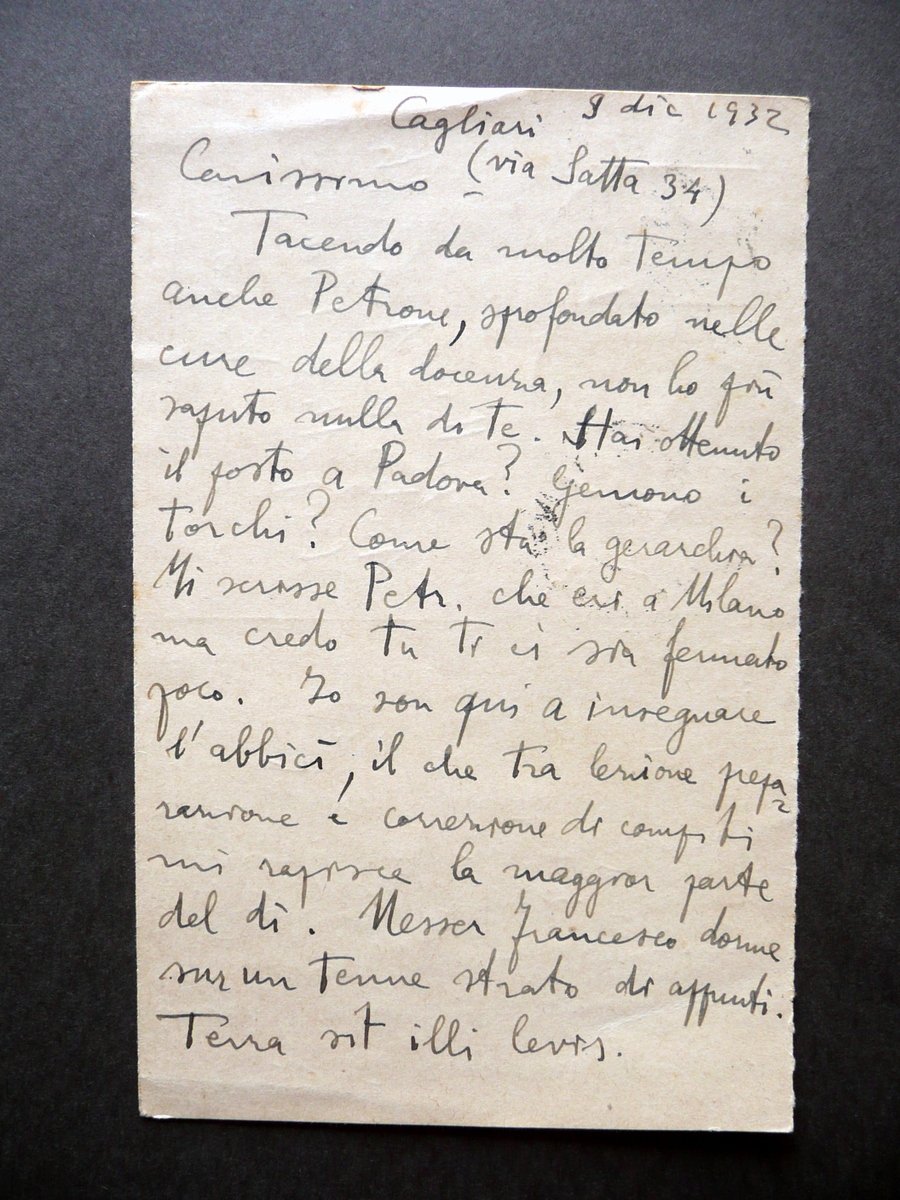 Autografo Fausto Montanari Cartolina Postale Cagliari 9/12/1932 Letteratura