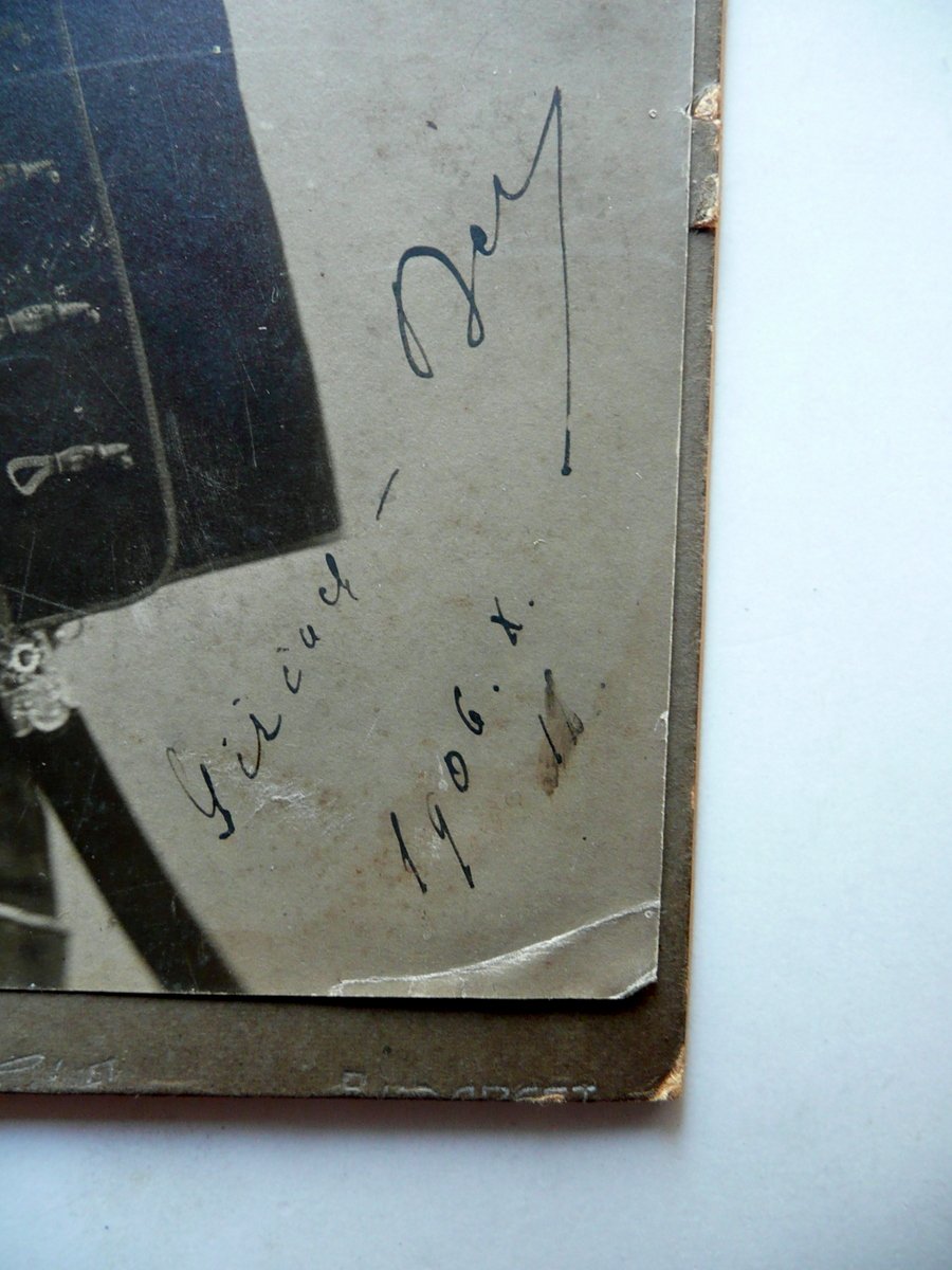 Autografo, Fotografia Originale Bey" (nobile - signore) Turco Foto Erdelyi - Budapest Datata 1906 Foto Erdelyi - Budapest, 1906; fotografia originale d'epoca applicata su supporto in cartoncino, il quale reca i dati a stampa del fotografo al margine inf. e al retro; firma e data autografe a penna a un angolo inf. della fotografia. Cm 20x13. Testo in ungherese. Condizioni di conservazione Esemplare complessivamente ben conservato con tracce di utilizzo; alcune piccole leggerissime bruniture e aloni; angoli della fotografia con minuscoli difetti e una traccia di piccola pieghetta; supporto in cartoncino con minime abrasioni ai margini e agli angoli, rifilato al margine inf. (vedi foto). Difficile l'indicazione esatta del nome del "Bey" (termine che in lingua turca significa "nobile - signore", in passato titolo di nobili e alti funzionari ottomani) ivi fotografato. Foto Erdelyi - Budapest. SC03.D11404 N "