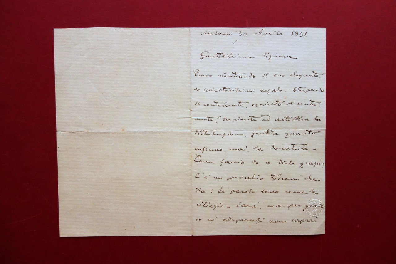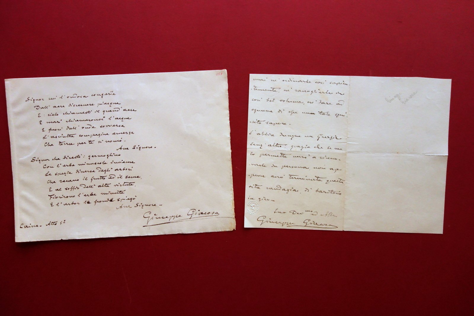 Autografo Giuseppe Giacosa Lettera Milano 30/4/1891 e Fac Simile Autografo