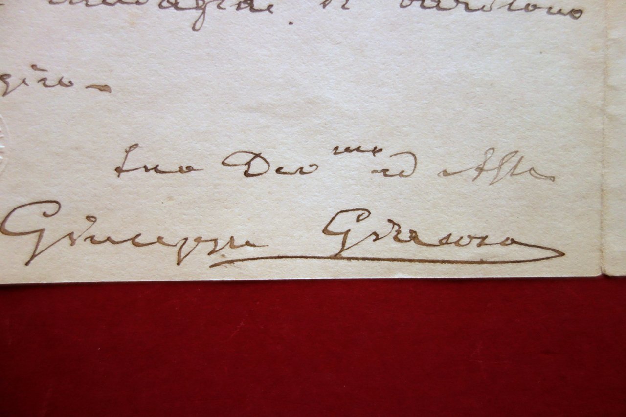 Autografo in buone condizioni con minimi segni del tempo, normali piega per spedizione, qualche minuscola brunitura. Tagleitto di qualche cm all'estremità della piega, alle facciate senza testo.