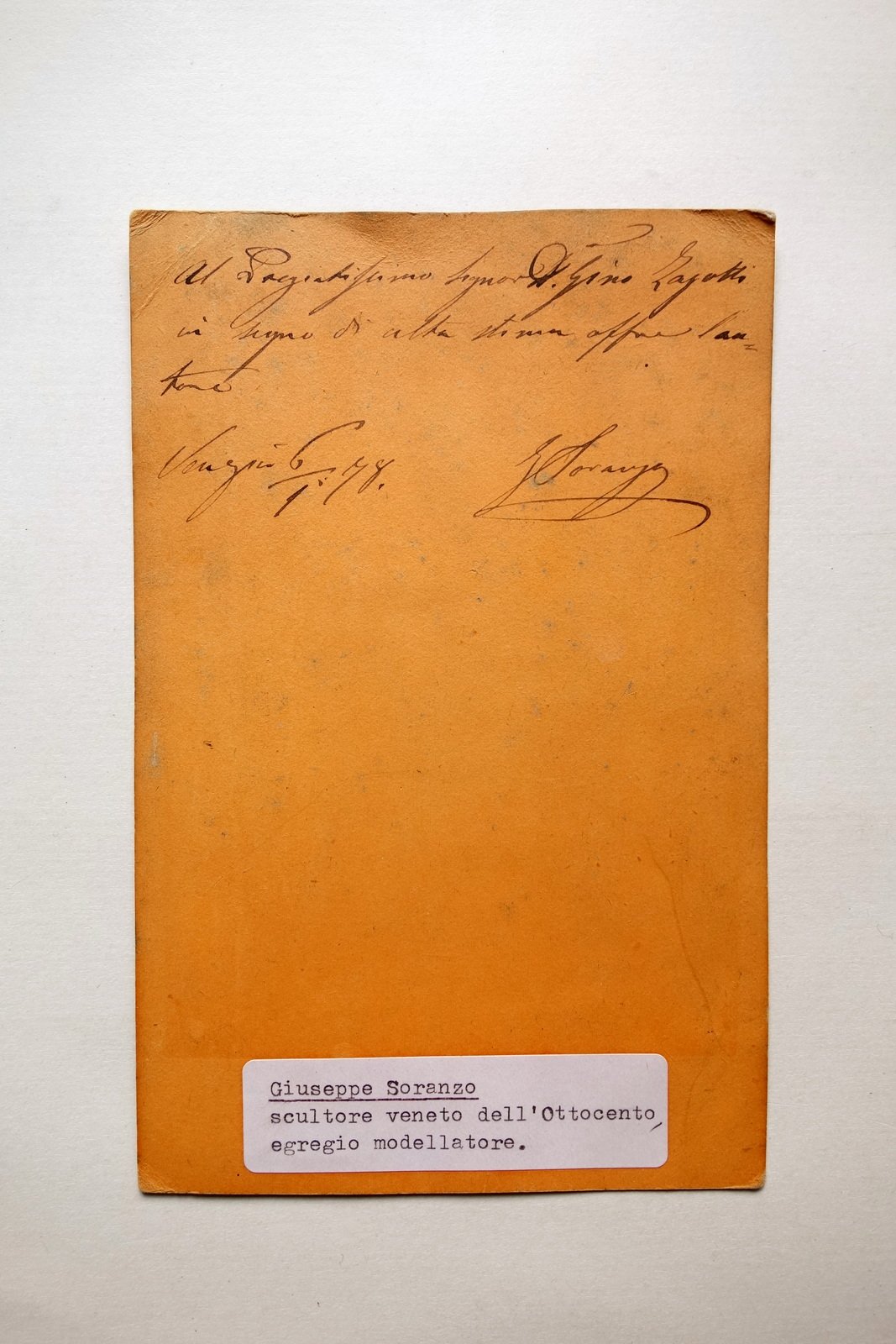 Autografo Giuseppe Soranzo Scultore Fotografia Busto 1898 Foto Perini Venezia