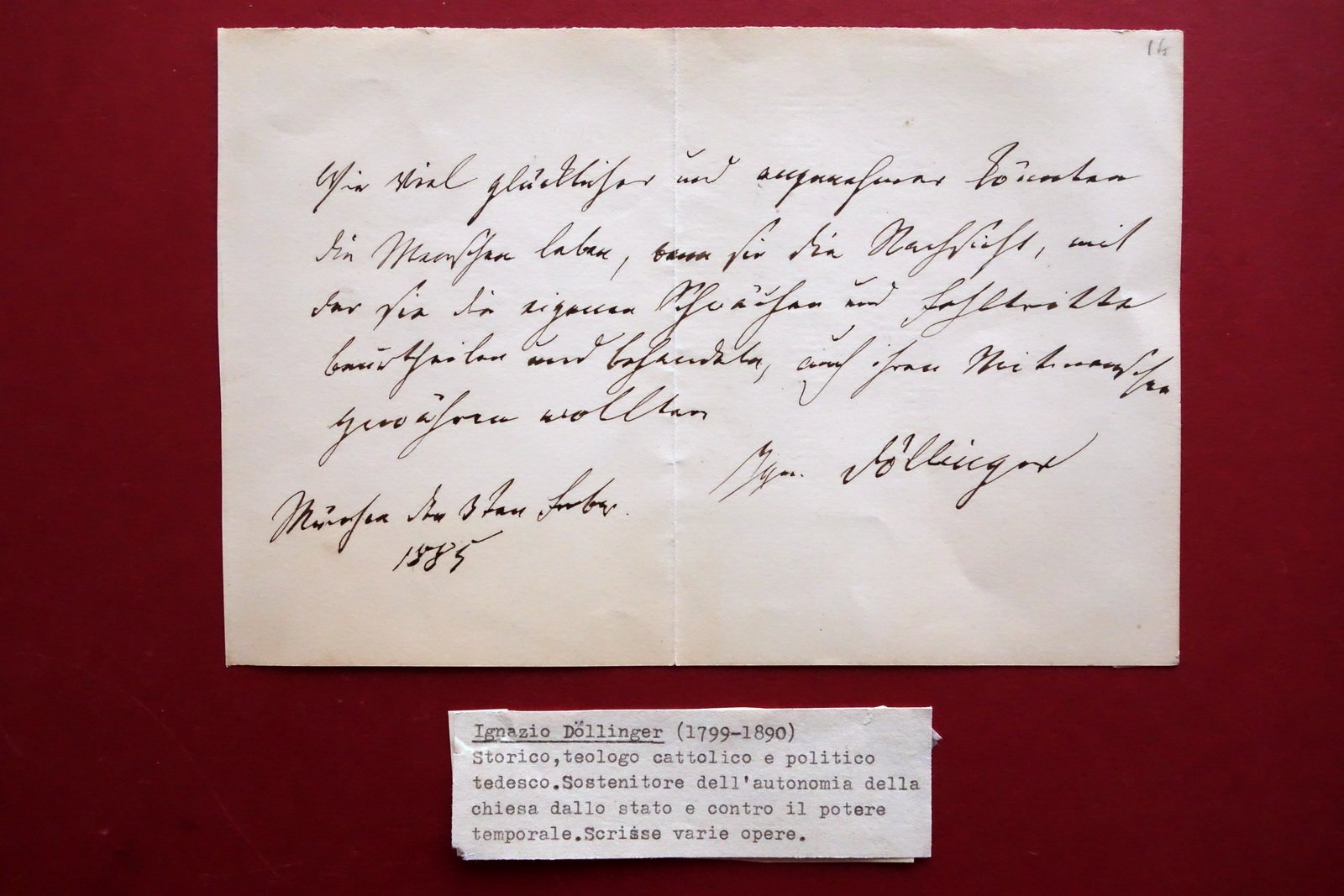 Autografo Ignaz von Dollinger Teologo Filosofo Biglietto 1885 Bamberga