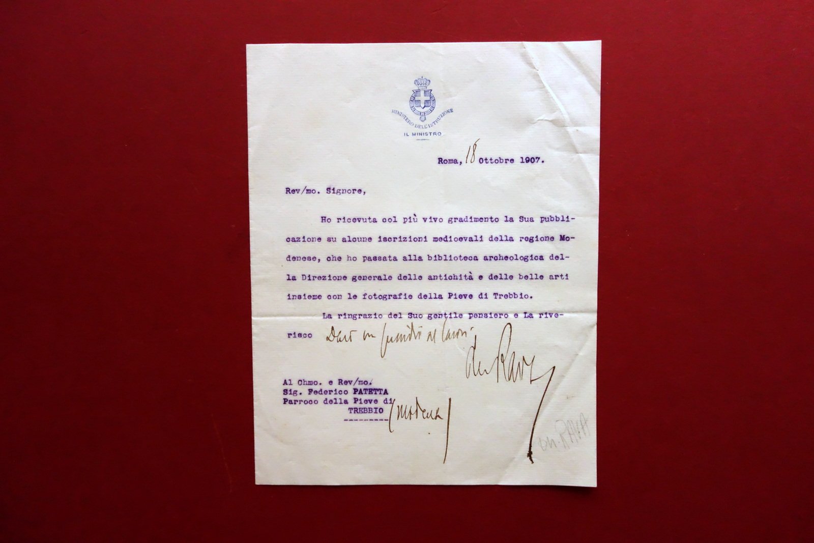 Autografo Luigi Rava Lettera Firmata Ministro dell'Istruzione Roma 18/10/1907