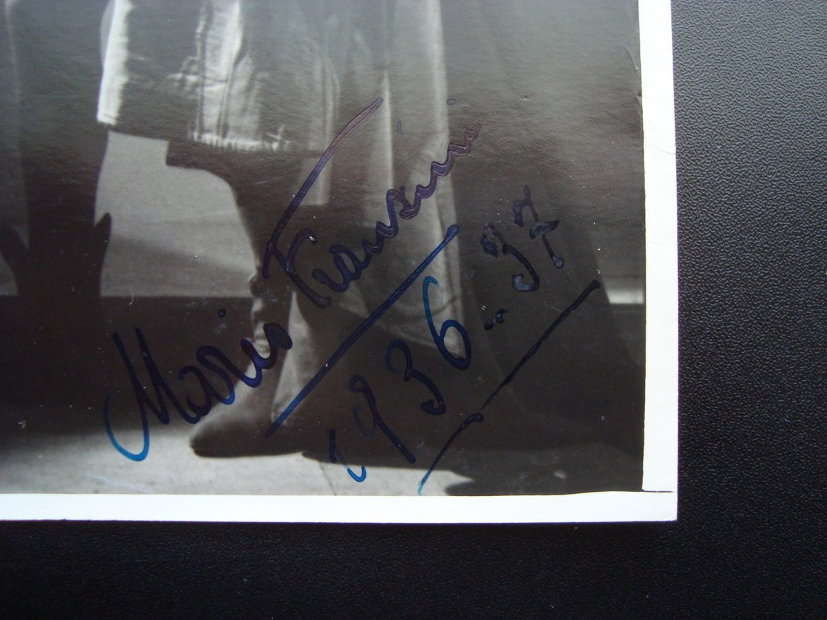 Fotografia autografa, Mario Franzini Fotografia autografa firmata Con due firme autografe Opera di Nizza 1936-37 Studio E.Brucken, Paris, 1936-37; grande fotografia originale in b/n con dedica e due firme autografe; retro con timbro del fotografo. Cm 24x17. Condizioni di conservazione: Esemplare in buone condizioni con tracce d'uso, margini e angoli con pochi minuscoli difetti, retro dei quattro angoli e dei margini con abrasioni e piccole tracce di precedente inserimento dell'esemplare in album. In ricordo del Faust di Goudod all'Opera di Nizza .in attesa di farmi sentire al Comunale di Bologna." SC03.D4832 BLU "
