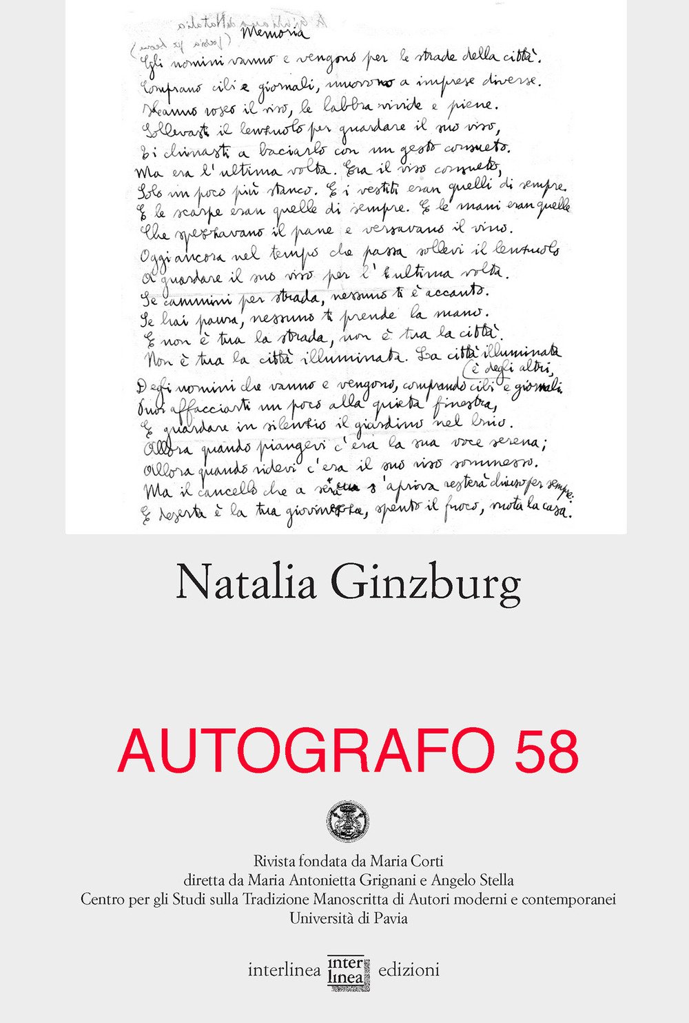Autografo. Natalia Ginzburg. Vol. 58
