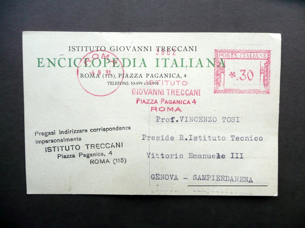 Autografo Ugo Spirito Cartolina Intestata Treccani Roma 3/9/1931 Filosofia