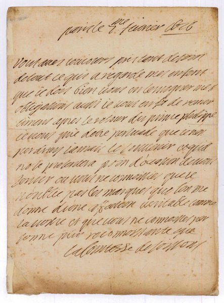 Autograph letter signed ("La Comtesse de Soissons").